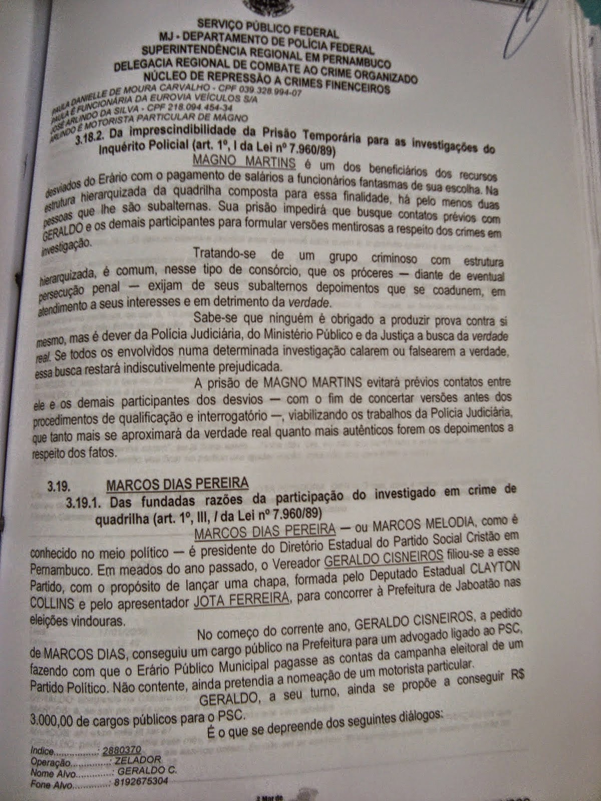 criminosas. Em um dos trechos dos grampos da Polícia Federal é possível