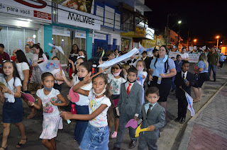 Saída da carreata foi com muito louvor, vários irmãos dirigindo com seus carros, motos, todos confeccionados com Bandeiras, faixas. Edct. toda essa organização em comemoração alusiva ao "Dia da Bíblia".